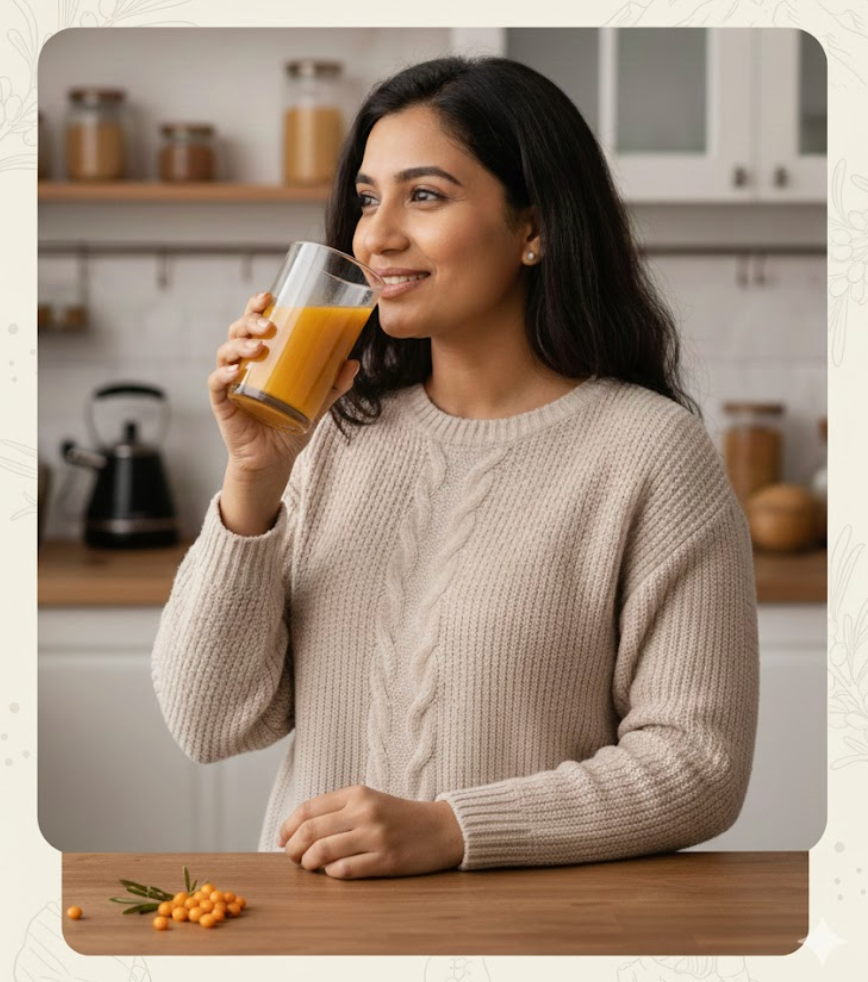 Sea buckthorn, being a nutrient-rich superfood (vitamins, minerals, and antioxidants), has been used for centuries in traditional medicines and for environmental restoration. This is good for immunity boost, glow, and clean skin, heart health, digestive health, and anti-inflammatory benefits.